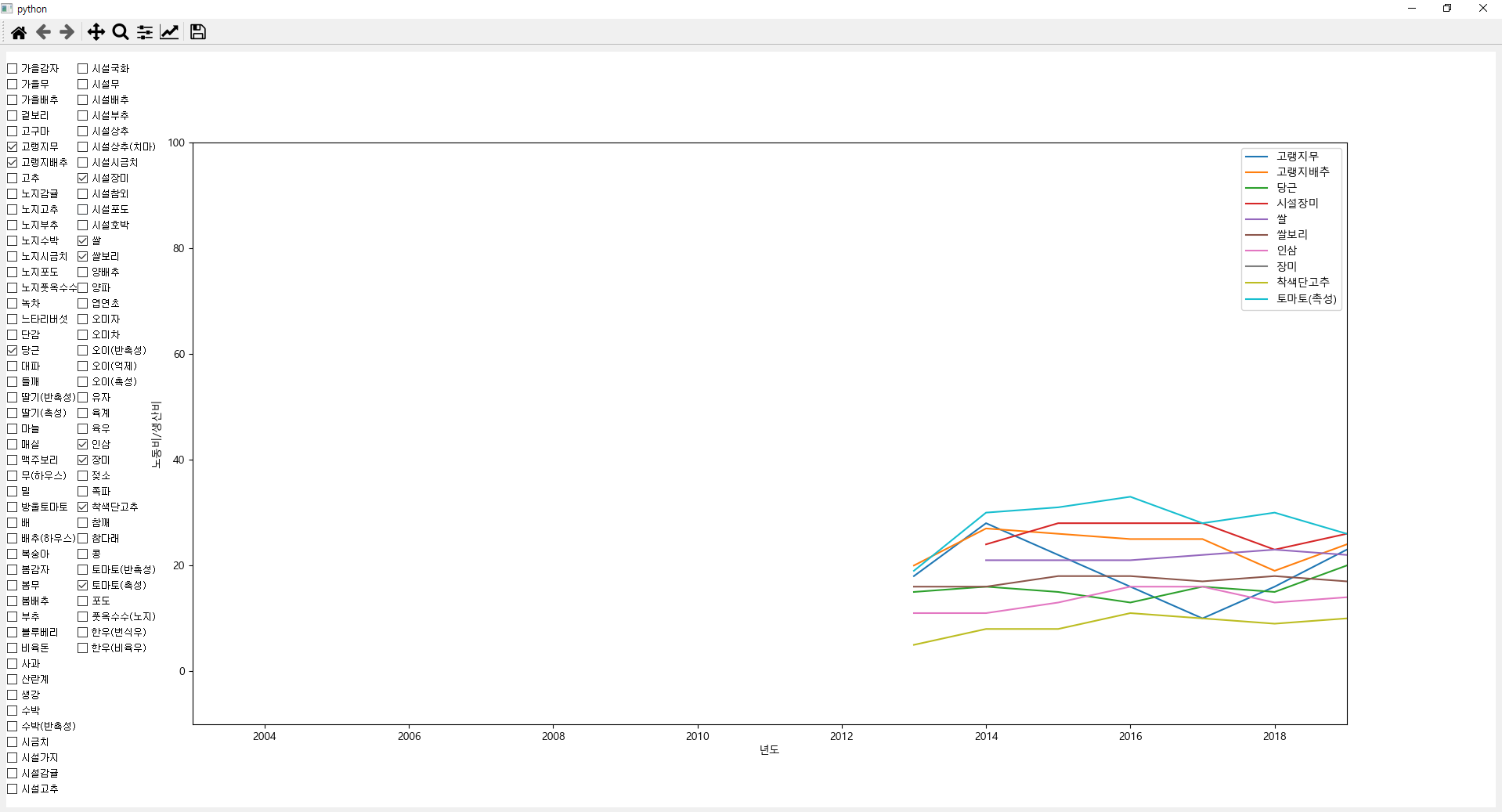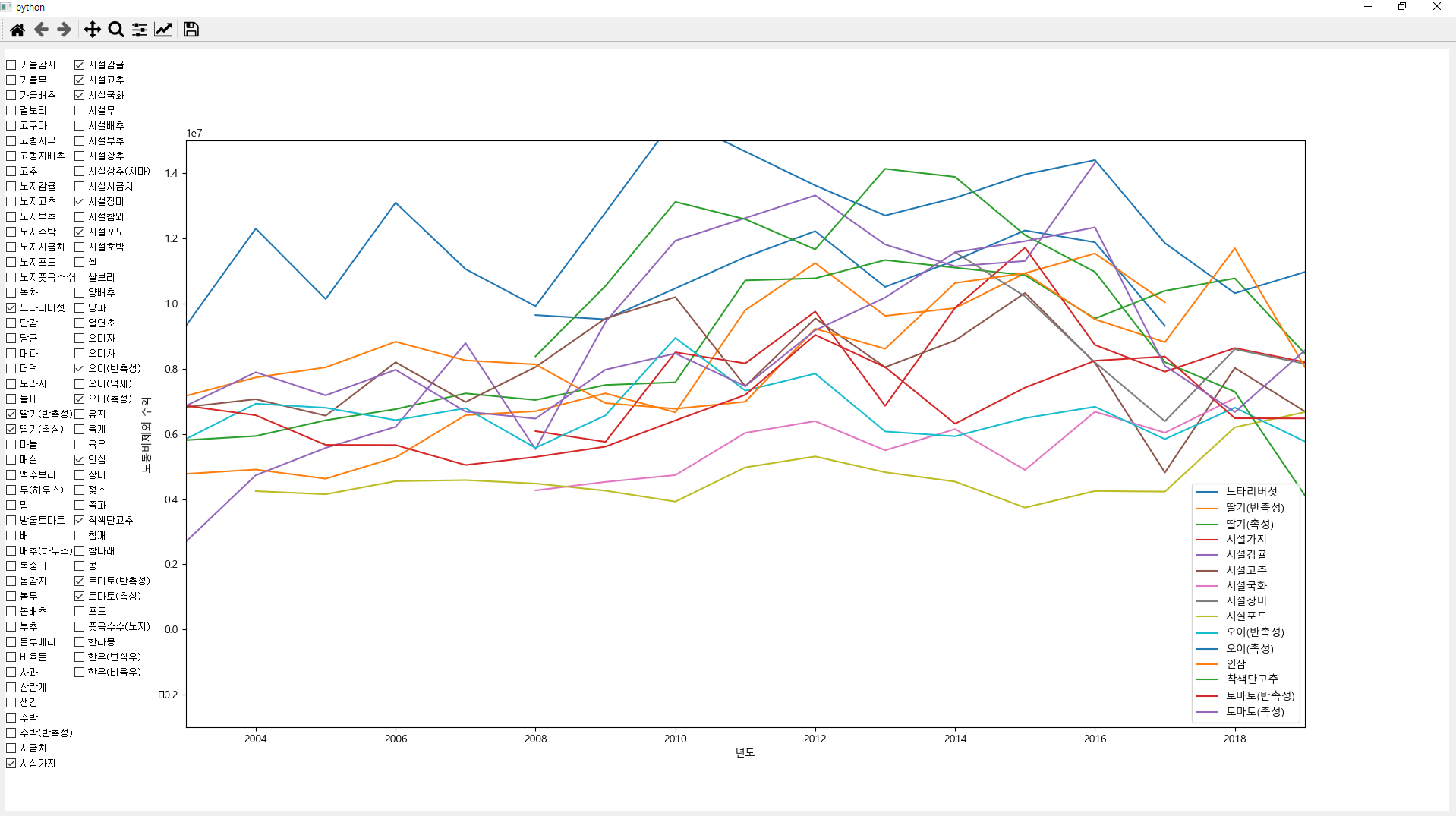원하는 작물의 체크박스를 클릭하면 확인할수 있습니다.(두번째 세번째 이미지는 값을 조금씩 수정하여 구해봤습니다.)