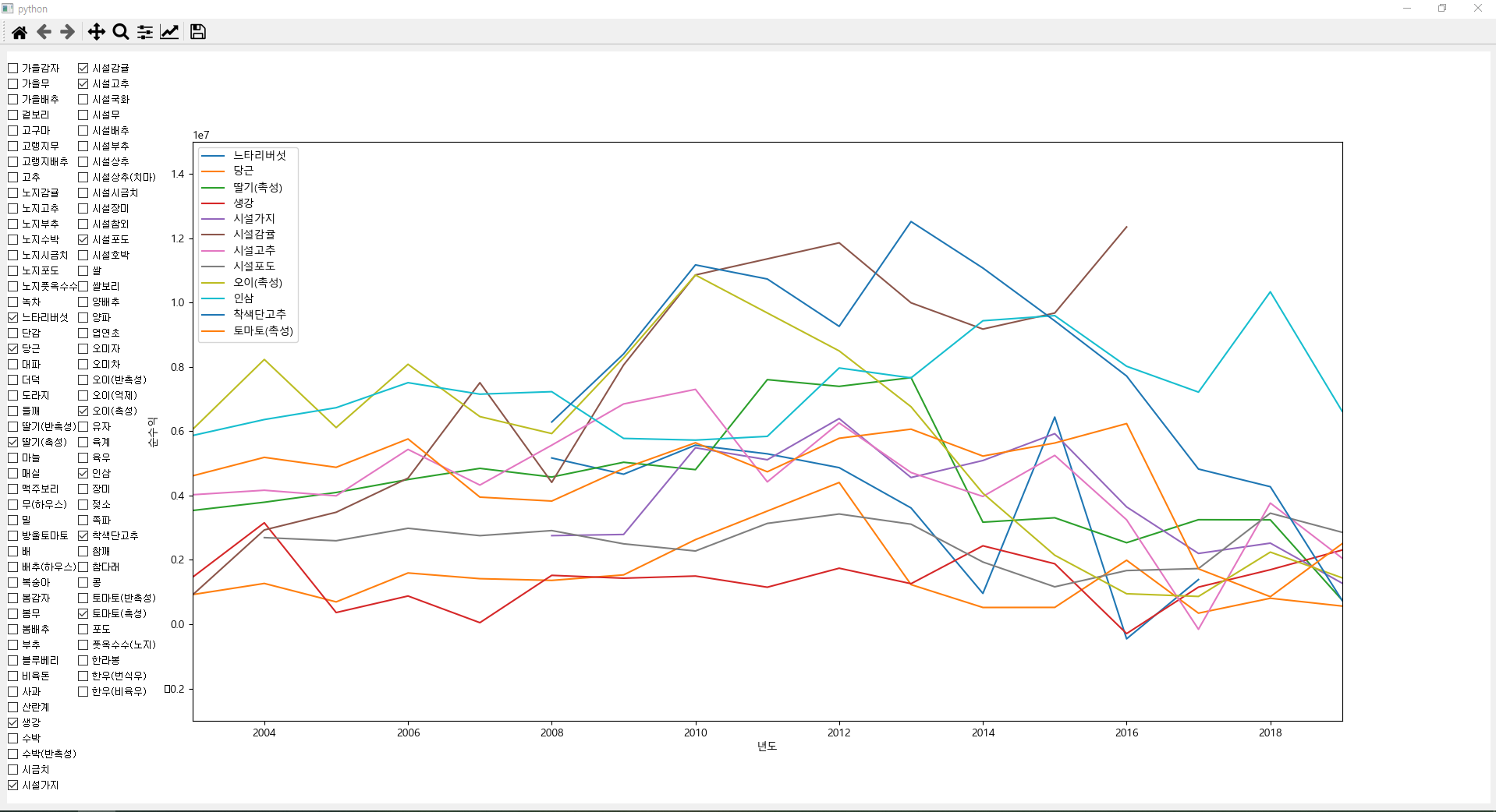 마이너스 수익을 내는경우도 있었으며 우상향하는 농산물을 찾을 수 없었습니다.